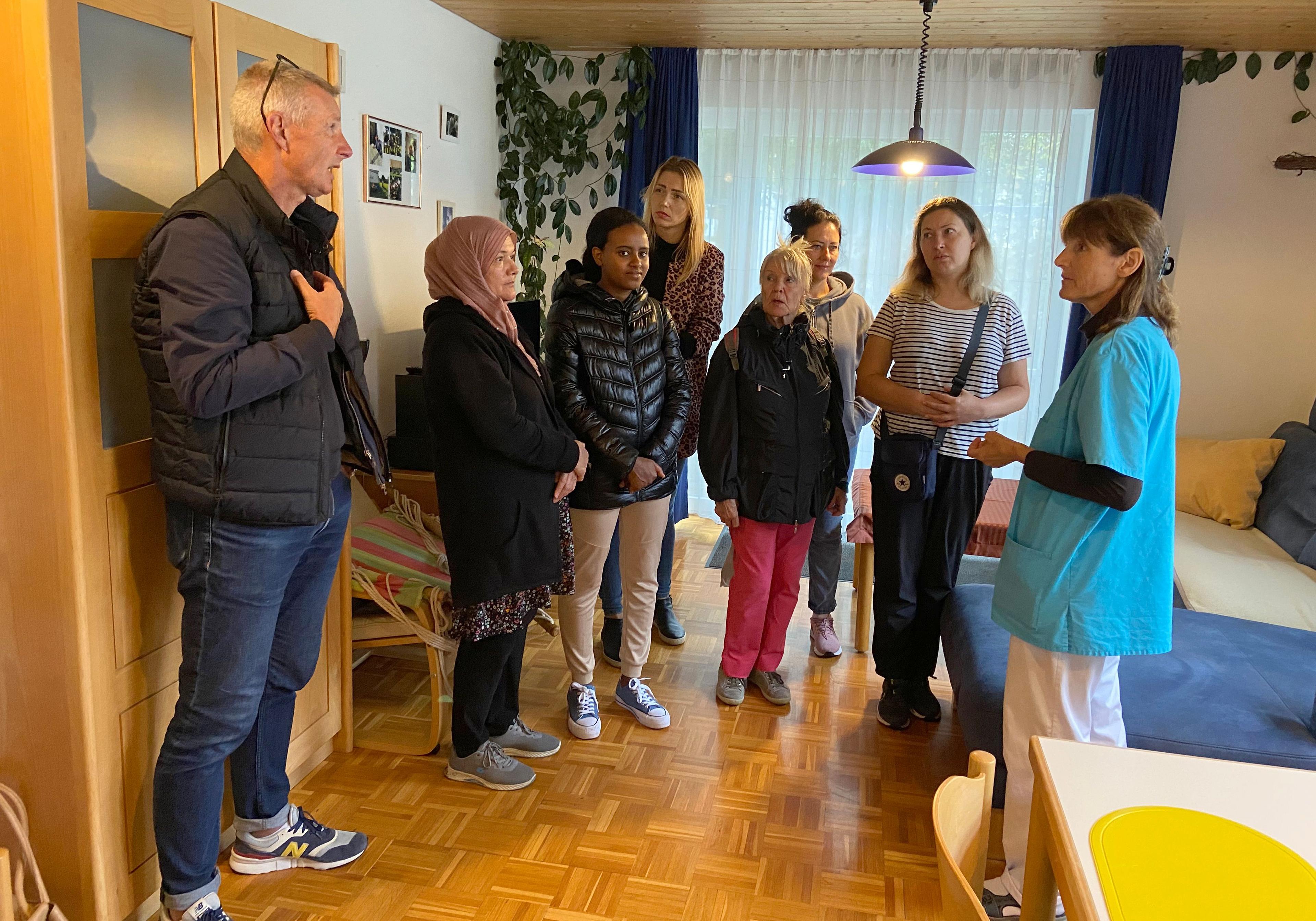 Bei der Besichtigung einer Wohneinheit unter der Leitung von Stefan Arnold, Bereichsleitung Wohnen bei der Lebenshilfe (im Bild links), ging es den Teilnehmerinnen von MY TURN primär um die Möglichkeit einer Berufstätigkeit in der sozialen Einrichtung.
